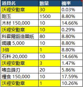 感謝各位大人對《權力的遊戲:凜冬將至M》的支持與喜愛,以下為【黑牆守護】轉盤機率表,還請各位大人多加留意~