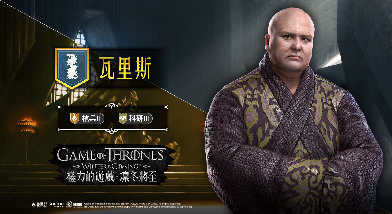 他看起來只是個圓圓胖胖的光頭,卻同時是名偽裝大師,可以輕易改變自己的形象,從而令旁人無法認出。 “為何在你們這些王公貴族的權力遊戲裡面,永遠是無辜的人受苦最多?”也許與艾德·史塔克交談時的這句話吐露了瓦里斯的心聲——他嚮往秩序和平衡,相信秩序能帶來和平。這也是他行動的原則。在錯綜複雜的權力遊戲中,他不效忠於任何一方,他只做有利於平衡的事——為此,他可以幫助任何一方,也可以反對任何一方。